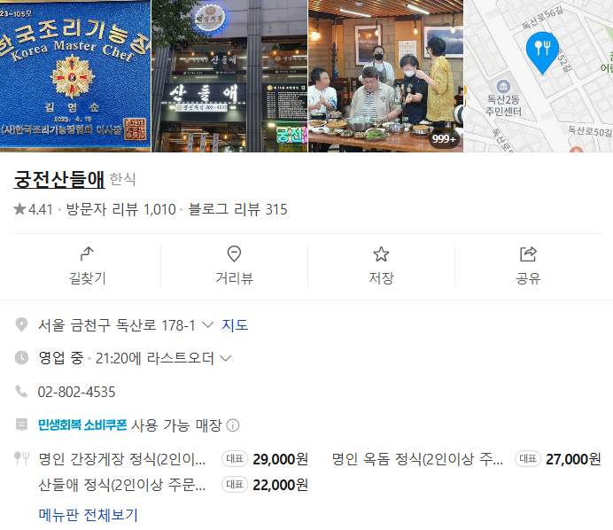 - 서울 금천구의 대표적인 한식당으로 자리 잡은 궁전산들애는 방송 출연 이전에도 이미 ‘숨은 맛집’으로 알려져 있었습니다.