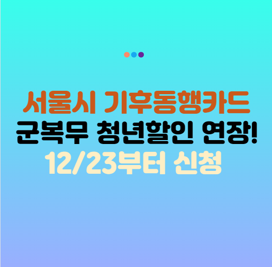 서울시는 2025년 1월 3일부터 ‘기후동행카드 청년 할인’ 연령을 군 복무 기간만큼 연장하기로 했습니다. 이를 통해 국방의 의무를 다한 청년들이 군 복무로 인한 기회 손실을 보상받을 수 있게 되었습니다.