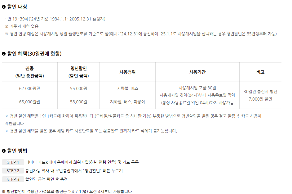 3) 청년 할인: 기존에는 만 19~39세 청년들에게 7000원 할인을 제공