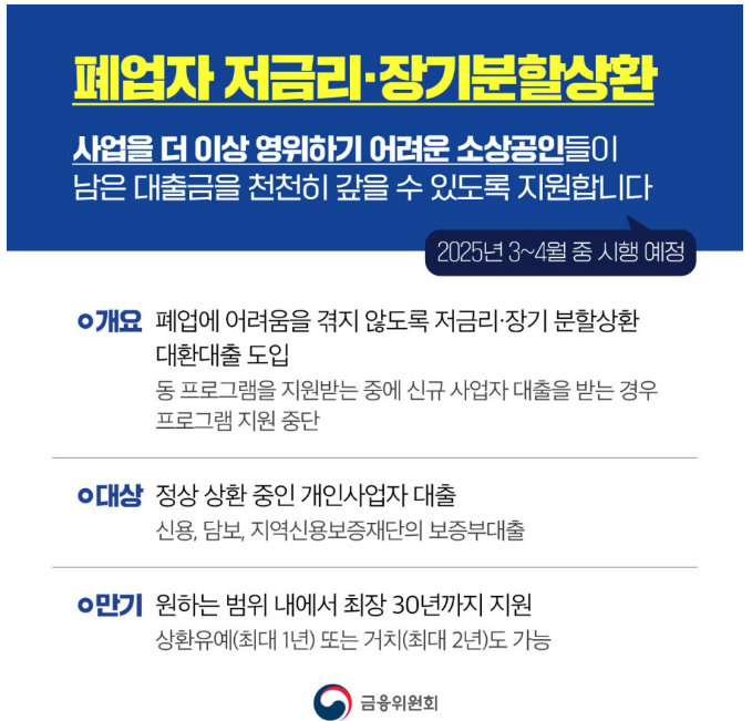 2) 폐업자를 위한 저금리·장기 분할상환 프로그램 : 2025년 3~4월 시작