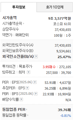 현재 주가는 52주 신고가에 근접한 수준으로, 시장에서는 실적 성장과 주주환원 정책에 대한 기대감이 강하게 반영되고 있습니다.