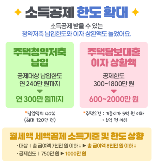 - 기존소득기준 : 총 급여 7000만 원 이하 -> 8000만 원 이하