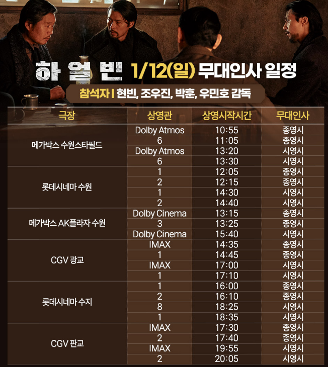 2) 1월 4일(토), 5일(일), 11일(토), 12일(일) 무대인사 일정