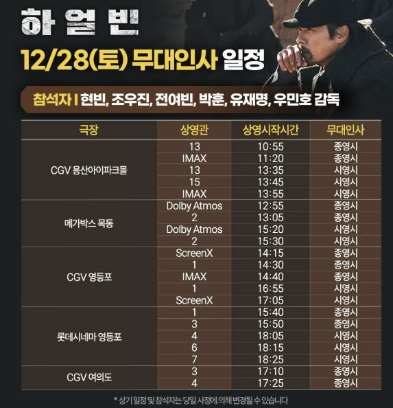 1) 12월 26일(목), 28일(토), 29일(일) 무대인사 일정