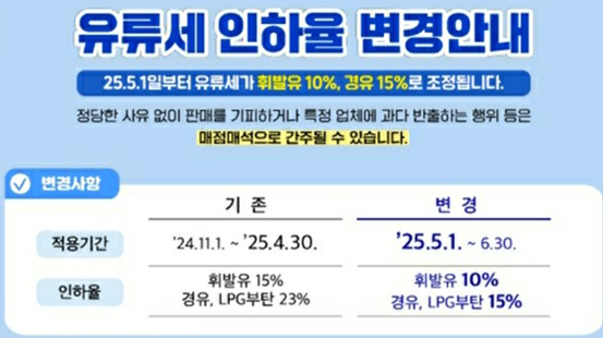 1. 유류세 인하 세부사항 2025년