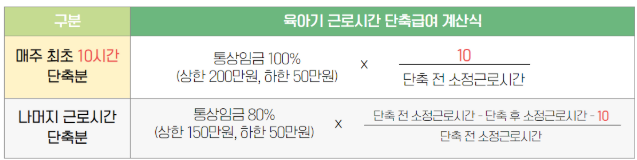 육아기 근로시간 단축은 부모가 자녀 양육에 더 많은 시간을 투자할 수 있도록 근무 시간을 줄이는 정책입니다. 이번 정책의 주요 변화는 대상 자녀 연령이 기존 8세 이하에서 12세 이하로 확대되었으며, 근로시간 단축의 최대 사용 기간이 2년에서 3년으로 늘어났습니다. 또한 최소 사용 기간이 3개월에서 1개월로 단축되어, 부모들이 보다 유연하게 제도를 활용할 수 있게 되었습니다. 근무 시간에 따른 급여는 비례적으로 지급되며, 최소 10시간 근무 할 경우 기존 소득의 100%를 받을 수 있습니다.