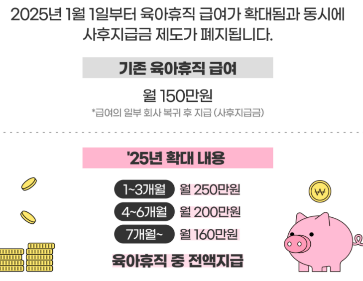 - 2025년 이후: 급여 전액을 육아휴직 중 매월 지급