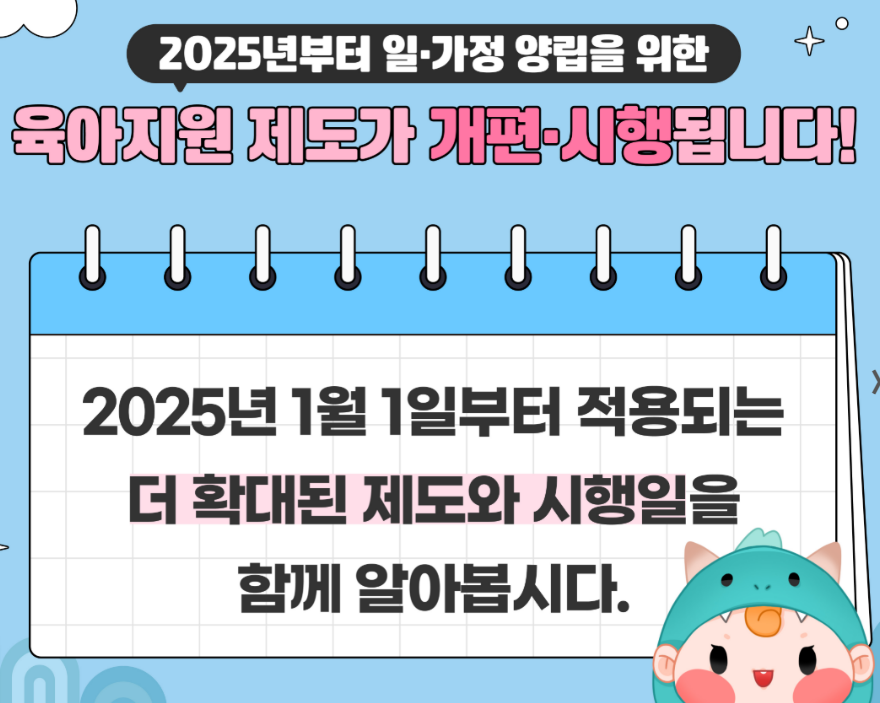 2025년 1월 1일부터 달라지는 육아지원제도 알아보기 이미지1: 2025년 1월 1일부터 달라지는 육아지원제도 알아보기 이미지2: 2025년부터 일,가정 양립을 위한 육아지원 제도가 개편,시행됩니다! 2025
