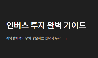 - 포트폴리오 헤지 : 보유 주식 비중이 높다면 일부 인버스로 위험을 분산합니다.