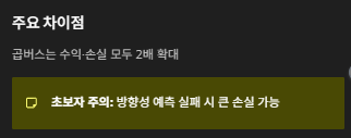- 초보자 주의 : 경험 없는 투자자에게는 부담이 될 수 있습니다.
