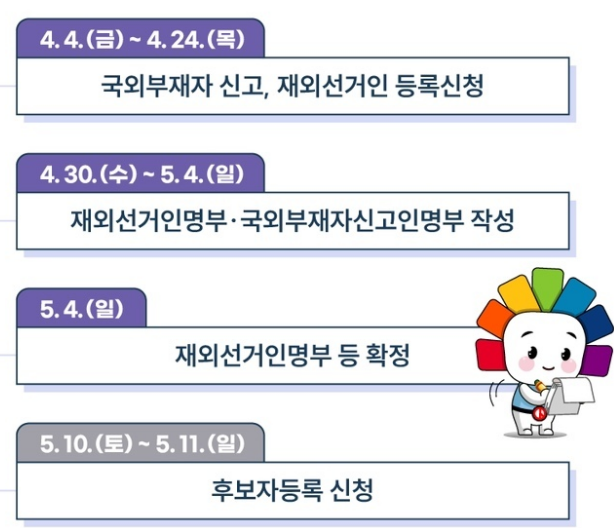 • 재외국민 투표는 2025년 5월 20일부터 5월 25일까지