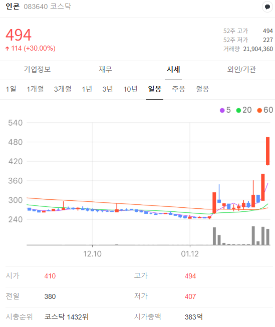 제약 바이오 관련주 인콘 주가 급등 전망에 대한 투자자 관심이 빠르게 높아지고 있습니다. 최근 인콘은 이틀 연속 강한 상승 흐름을 보이며 단기 수급이 집중되는 모습입니다.