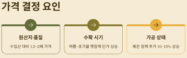 - 수입산 참깨 대비 가격차: 약 1.5배~2배 수준