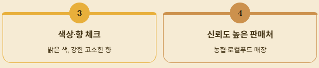 - ⑥ 판매처 신뢰도: 농협·로컬푸드 매장 등 공신력 있는 판매처를 이용하면 품질 보증이 용이합니다.