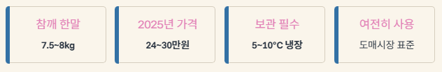 참깨 한말은 약 7.5~8kg이며, 2025년 국산 참깨 기준 시세는 약 24만~30만원대입니다.