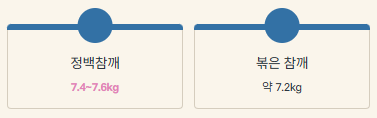 - 정백참깨(껍질 제거): 약 7.4~7.6kg