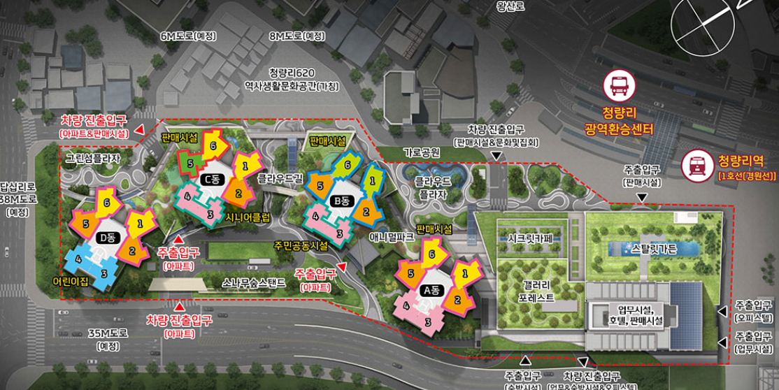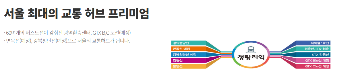 - 초역세권 입지: 청량리역과 바로 연결되는 위치로 지하철·KTX·GTX 예정 노선까지 이용 가능