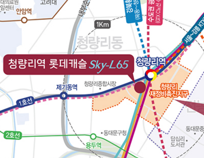 청량리 롯데캐슬 SKY-L65는 서울 동대문구 전농동에서 65층 규모로 조성된 초고층 주거복합단지입니다.