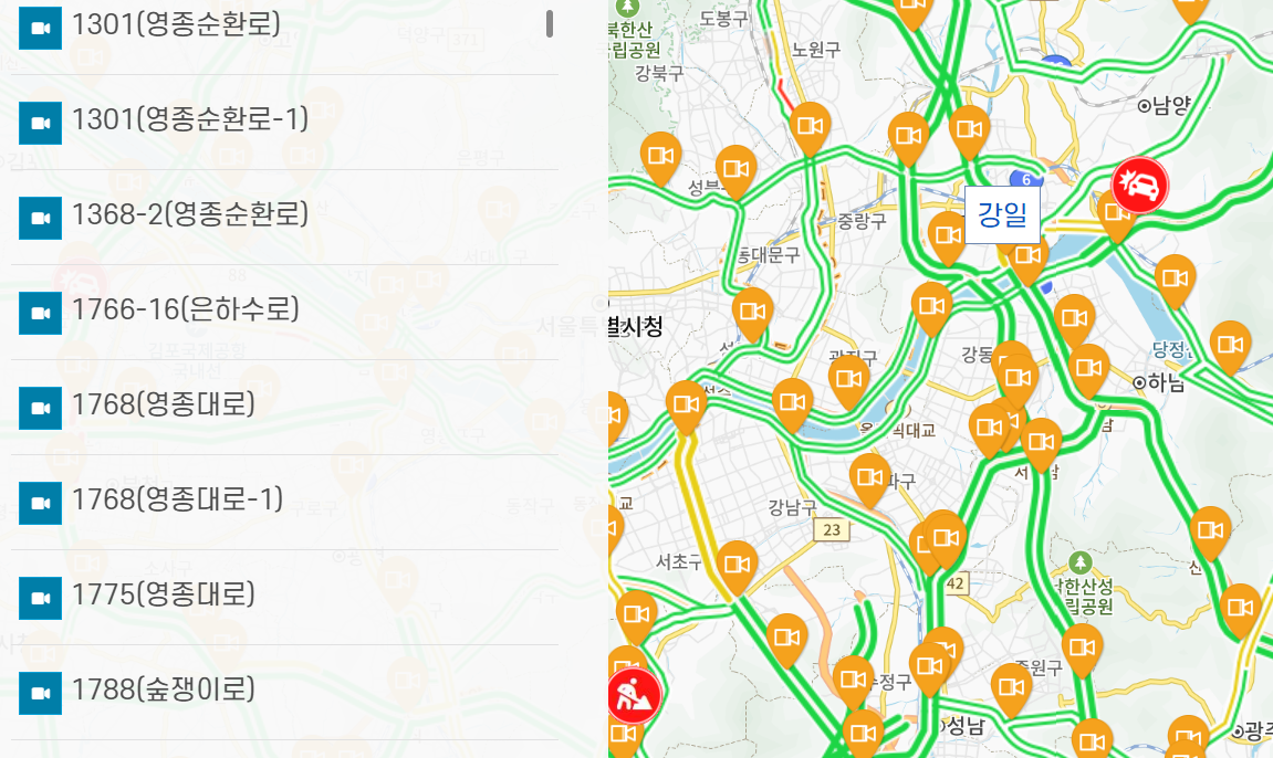 이 구간은 평소에도 교통량이 많아 혼잡이 잦으며, CCTV로 확인했을 때 정체가 빨간색으로 표시되는 경우가 가장 빈번합니다.