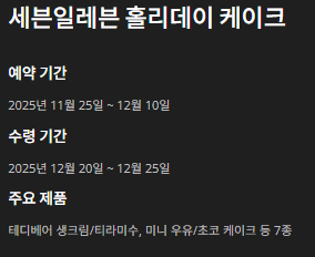 - 이벤트 → 크리스마스 케이크 메뉴에서 예약 가능