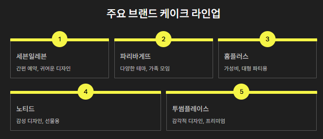 - 추천 대상: 급하게 선물용 케이크가 필요한 고객, 직장 내 소규모 파티