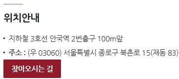 - 지하철 3호선 안국역 2번 출구 100m 앞