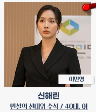 - 현민철의 최측근 참모인 신해린은 이미 부부 갈등의 불씨를 키우는 인물로 등장했습니다.