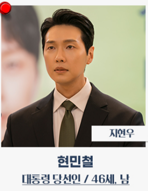 정치적으로도 ‘퍼스트레이디’라는 위치를 통해 국민의 관심을 한 몸에 받고 있으며, 권력 게임의 한 축으로 자리 잡습니다. - 현민철 (지현우 분)