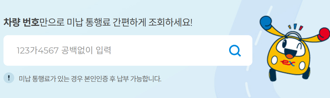 - 이용 경로: 로그인 후 '미납통행료 조회' 메뉴 선택