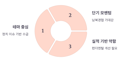 다만, 이번 상승은 정치 이슈에 따른 단기적 수급 효과로 실적 기반 상승은 아직 확인되지 않았습니다.