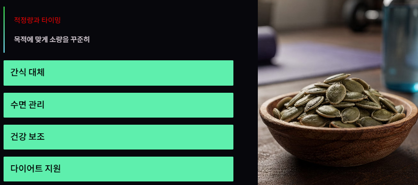 호박씨는 단독으로 먹어도 좋지만, 샐러드나 요거트에 곁들이면 영양 균형과 포만감을 동시에 높일 수 있습니다.