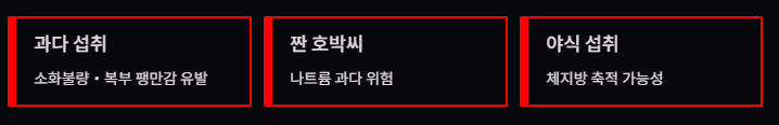 밤늦은 시간에 야식처럼 먹는 습관 역시 좋지 않습니다. 이 경우 체지방 축적 가능성이 높아지고 수면의 질에도 영향을 줄 수 있습니다.