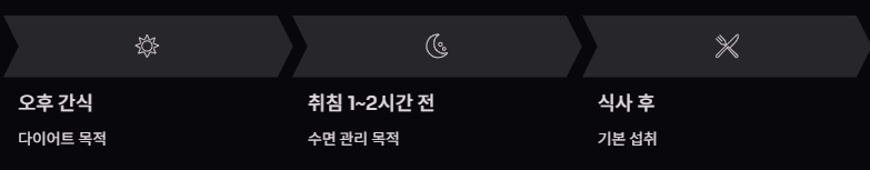 섭취 타이밍은 잠자기 1~2시간 전이 가장 이상적이며, 소량만 섭취해야 소화 부담 없이 효과를 기대할 수 있습니다. 너무 늦은 시간에 많은 양을 먹으면 위장 활동이 활발해져 오히려 수면을 방해할 수 있으므로 주의가 필요합니다.
