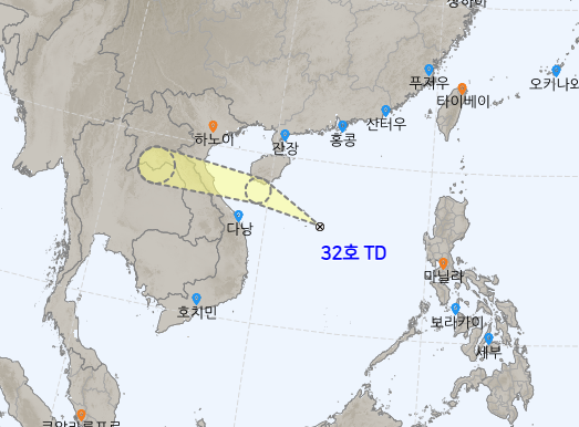 현재 위치는 중국 하이난섬 남동쪽 해상으로, 일본 기상청 발표에 따르면 열대저압부 상태로 서진 중이며 8월 30일 오전쯤 태풍으로 격상될 가능성이 높습니다. 미국 합동태풍경보센터(JTWC) 역시 이 시스템의 발달 가능성을 High로 평가했습니다. 우리 기상청도 32호 열대저압부라는 명칭으로 관측 중이며, 발생 후 곧바로 베트남 방향으로 이동할 것으로 예상하고 있습니다.