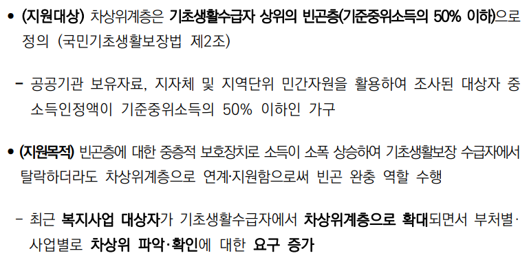 1. 차상위계층 기준 : 기준 중위소득 50% 이하