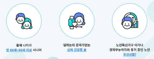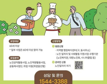- 방문 신청: 가까운 행정복지센터나 시니어클럽을 방문하여 상담 후 신청