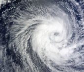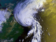 → 위성사진 기반 태풍 이동 상황과 구름대, 바람 방향 표시