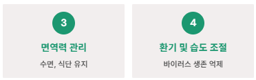 - 충분한 휴식: 면역력 회복을 위한 안정 필요