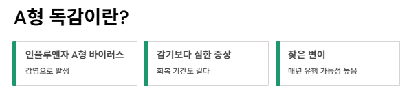 - 감기보다 증상 심하고 회복기간 길다