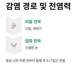 - 발병 전날부터 감염력 존재