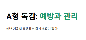 A형 독감은 인플루엔자 바이러스 A형에 의해 발생하는 급성 호흡기 질환으로, 매년 겨울철 유행하는 대표적인 감염병입니다.