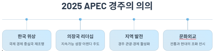 → 한국이 APEC 의장국으로서 국제 위상 제고와 경제외교 강화에 중요한 계기가 됩니다.