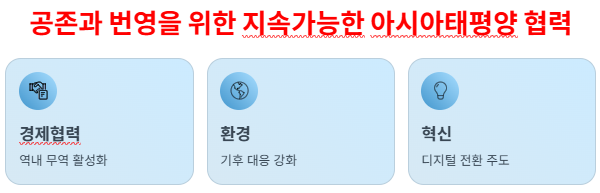 - APEC 의장국으로서의 리더십 – 2025년 한국은 APEC 의장국으로서 지속가능한 성장 아젠다 주도