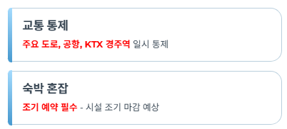 - 교통 통제: 주요 도로 및 공항, KTX 경주역 인근은 일시 통제 예정