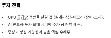 - 가격 변동 리스크 : GPU 가격 상승이 일정 수준 이상 지속될 경우 단기 부담으로 작용할 수 있습니다.