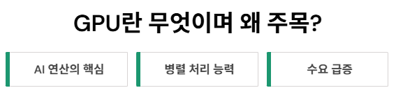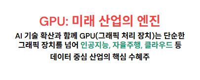 즉, GPU는 더 이상 단순한 그래픽용 칩이 아니라 AI 시대의 두뇌 역할을 하는 고성능 연산 장치로 진화한 것입니다.
