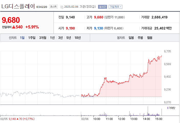 (1) 2025년 2월 6일 기준 주가: 9,680원