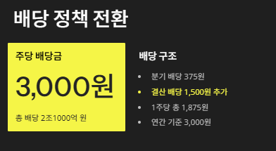 6) 연간 배당 3000원, 총 배당 2조1000억 원